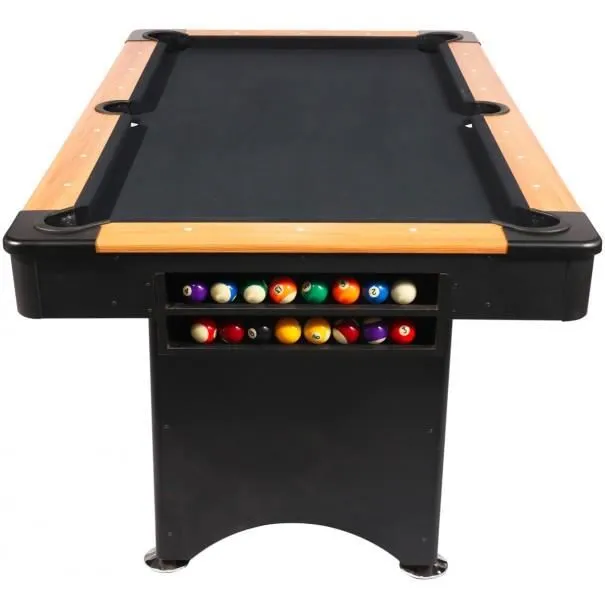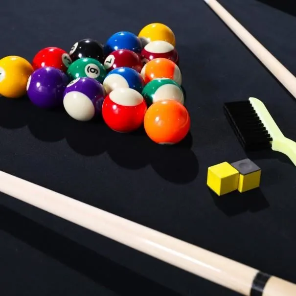 Découvrez le billard pliant 6ft Mannoni, parfait pour les espaces restreints. Avec ses dimensions de 183 x 102 x 76 cm, il est conçu pour un rangement facile grâce à son système pliant. Fabriqué en bois MDF de haute qualité, il inclut 2 queues, un jeu de billes, un triangle, une brosse, une craie, ainsi que 2 raquettes de ping pong et 2 balles.