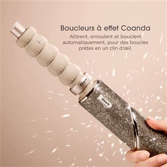 Boucleurs à effet Coanda : la puissance du flux d’air attire et enroule les mèches autour du cylindre pour un bouclage simple et automatique, sans les dommages thermiques d’un fer à boucler. 2 boucleurs (droit et gauche).